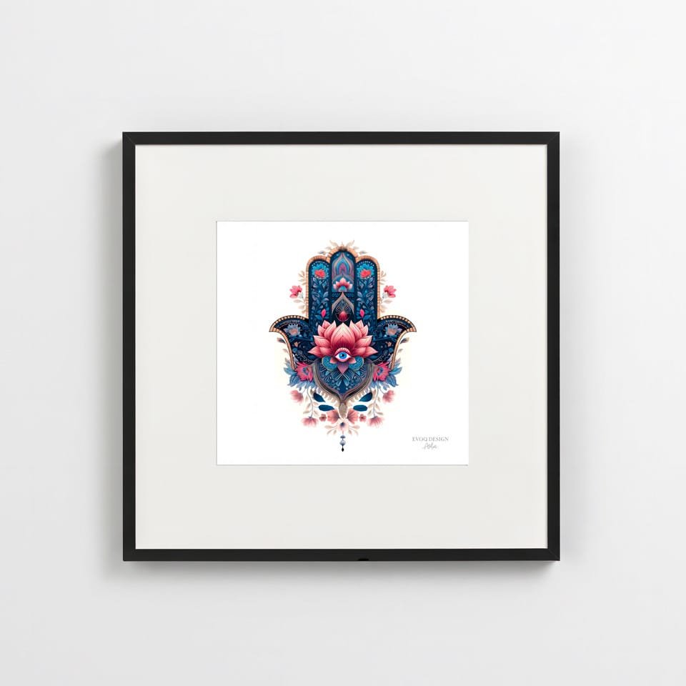 The Lucky Charm Art Collection combines digital artistry and mixed-media techniques, finished with hand-applied gold leaf details that make every piece truly one of a kind. Each artwork is framed in a sleek 32×32 cm (12½ × 12½ in) black aluminum frame with an acid-free mat to protect the print and keep the colours vibrant over time. The frame’s aluminum build creates a clean, modern look, while the lightweight polystyrene front provides clear and safe display. The back panel is made of sturdy fiberboard, and the mat is crafted from high-quality paper.