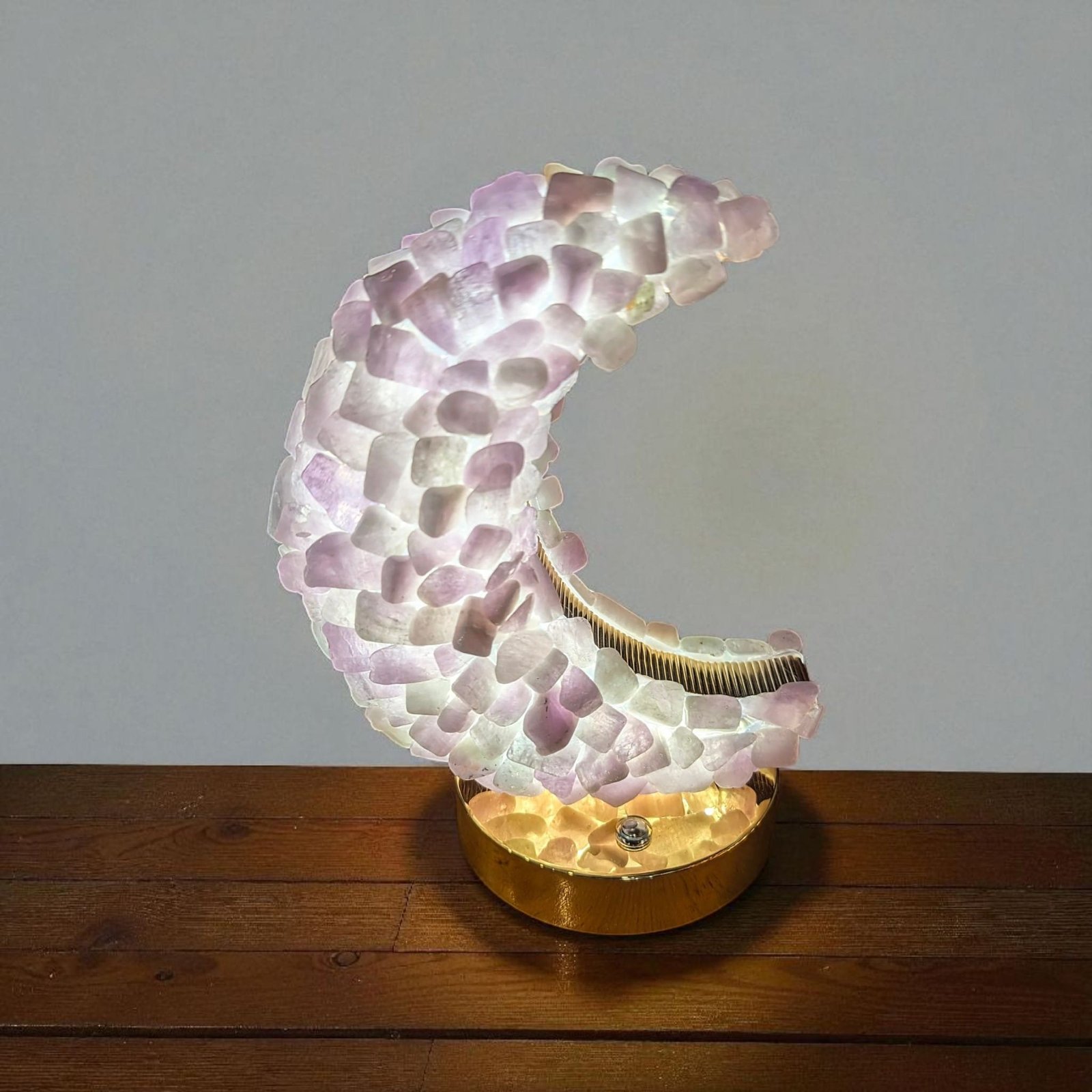 This gem crescent moon lamp glows gently, its curved shape dotted with sparkling gems. The crescent moon stands for dreams, change, and quiet strength. The lamp brings a calm, dreamy feeling — a small reminder of the night sky. It’s both a cozy light and a beautiful piece of decor.