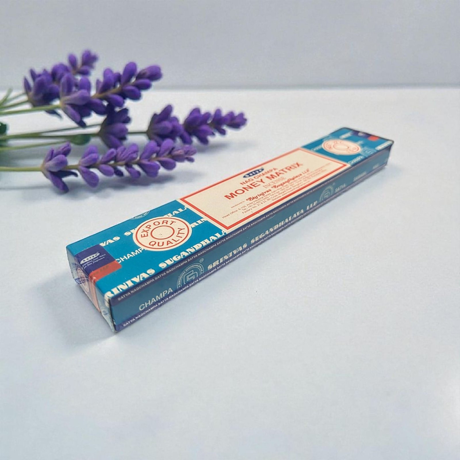 It is typically made from natural ingredients such as resins, herbs, wood powders, and essential oils. Whether in stick, cone, or loose form, incense serves as both a sensory and symbolic tool that enhances environments and experiences. Its enduring appeal lies in its ability to harmonize space, mind, and spirit through the power of scent, and these Nag Champa Money Matrix incense sticks are a great choice.