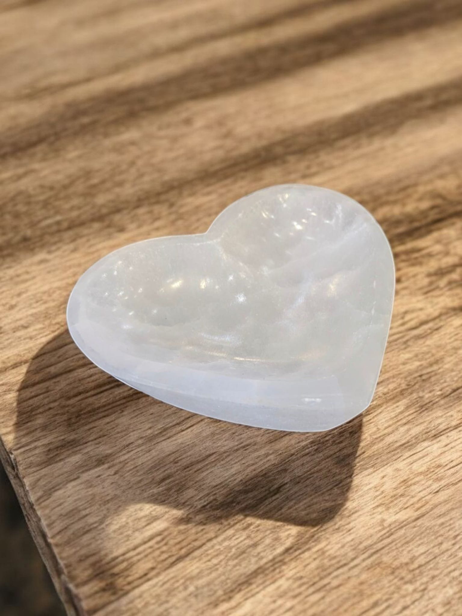 Crystal bowls are shallow dishes made from high-energy stones, used to hold and charge smaller crystals, herbs, or meaningful items. Their shape helps focus and strengthen the energy of whatever’s placed inside, making them useful for setting intentions or cleansing tools. They also add a calm, natural beauty to any space, blending spiritual use with simple decoration. This bowl is shaped like a heart.