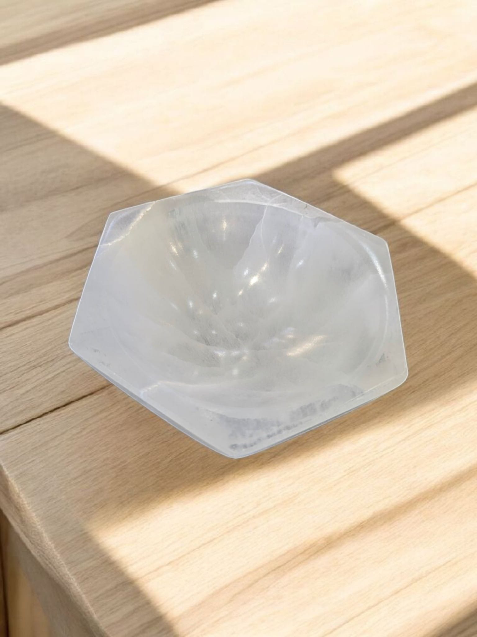 Crystal bowls are shallow dishes made from high-energy stones, used to hold and charge smaller crystals, herbs, or meaningful items. Their shape helps focus and strengthen the energy of whatever’s placed inside, making them useful for setting intentions or cleansing tools. They also add a calm, natural beauty to any space, blending spiritual use with simple decoration. This bowl is shaped like a hexagon.