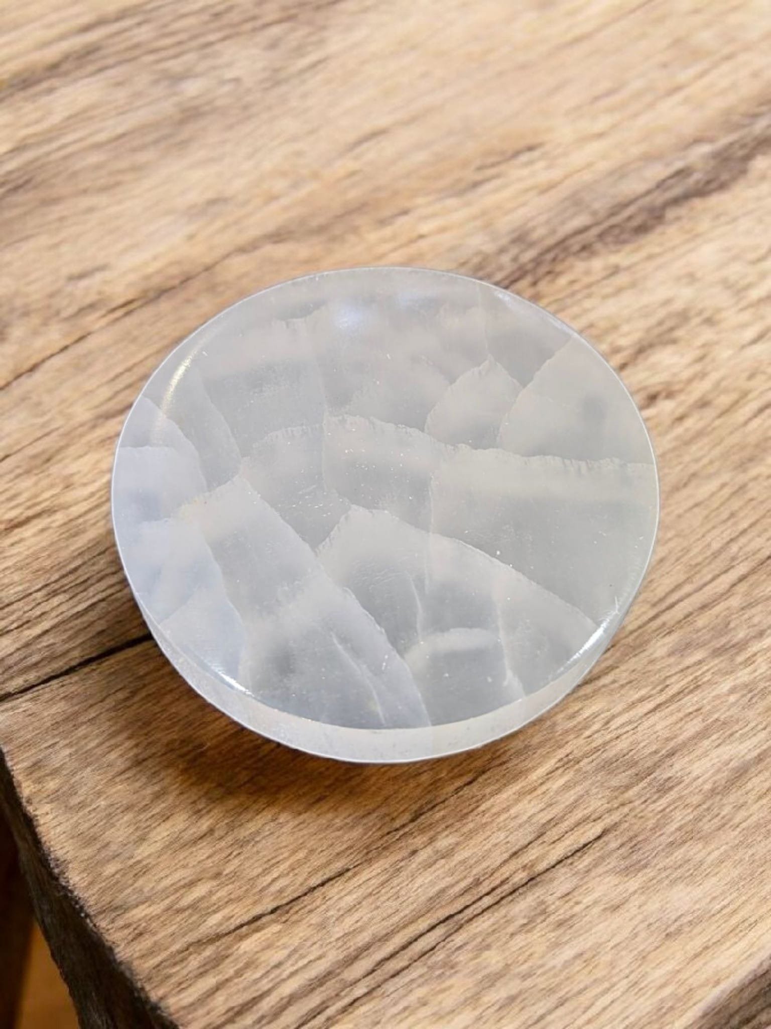 Gem plates are smooth, flat slabs carved from high-vibration minerals, often used as energetic charging bases for spiritual tools and intentions. They serve as amplifiers, helping to cleanse and recharge surrounding objects by radiating stabilizing frequencies, making them ideal for altar work or daily rituals. Beyond their metaphysical uses, these plates also carry a serene, luminous beauty that adds a refined, grounding presence to any sacred space or home décor.