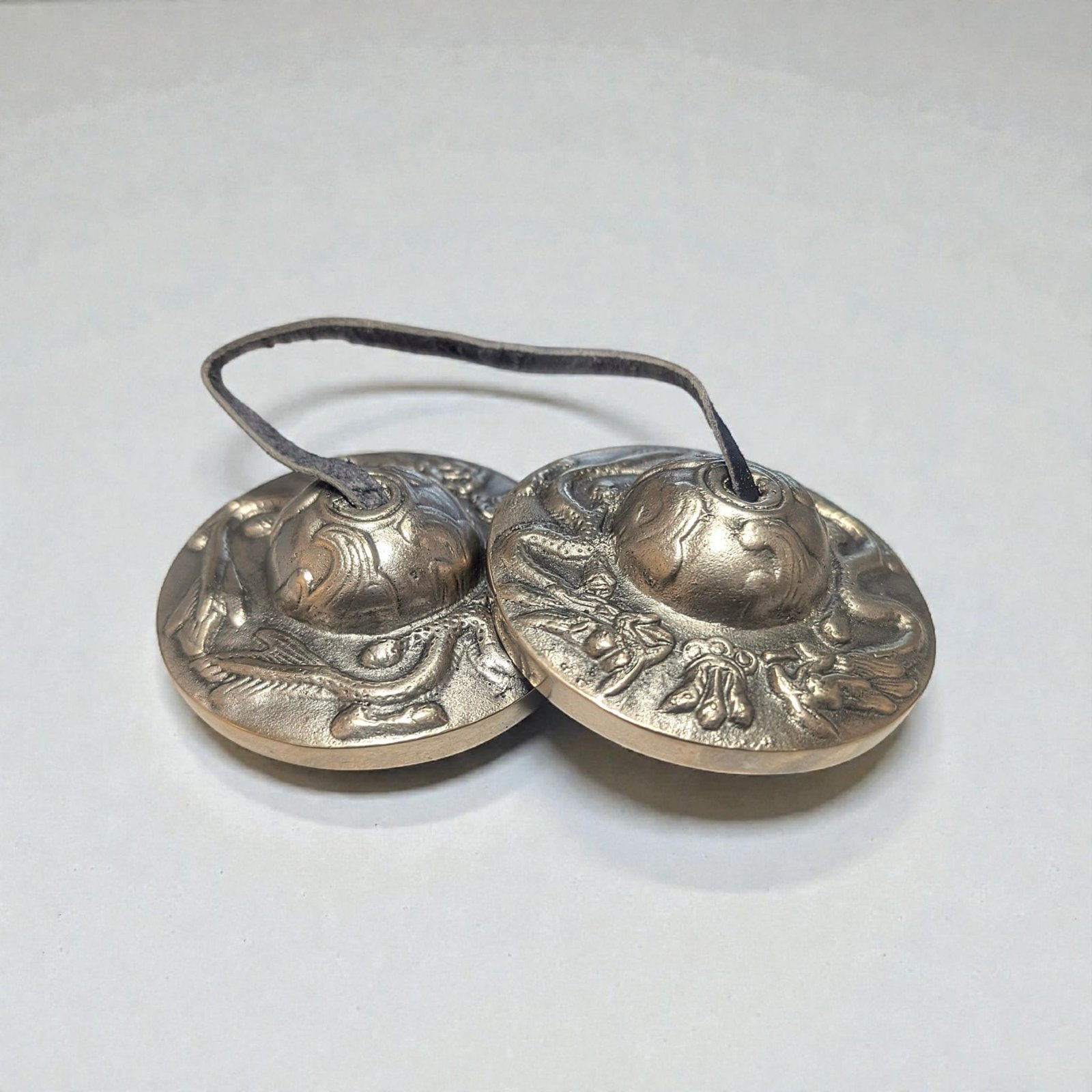 Tingsha, the small Tibetan hand cymbals traditionally used in ritual and meditative practices, carry a clear, shimmering tone that seems to cut straight through ambient noise and restless thoughts. Their sound—bright, pure, and lingering—acts like a breath of clarity, creating a moment of spaciousness wherever it rings. Held lightly by their leather cord and tapped together, they offer a simple yet powerful way to mark transitions, open a practice, or call attention back to the present.